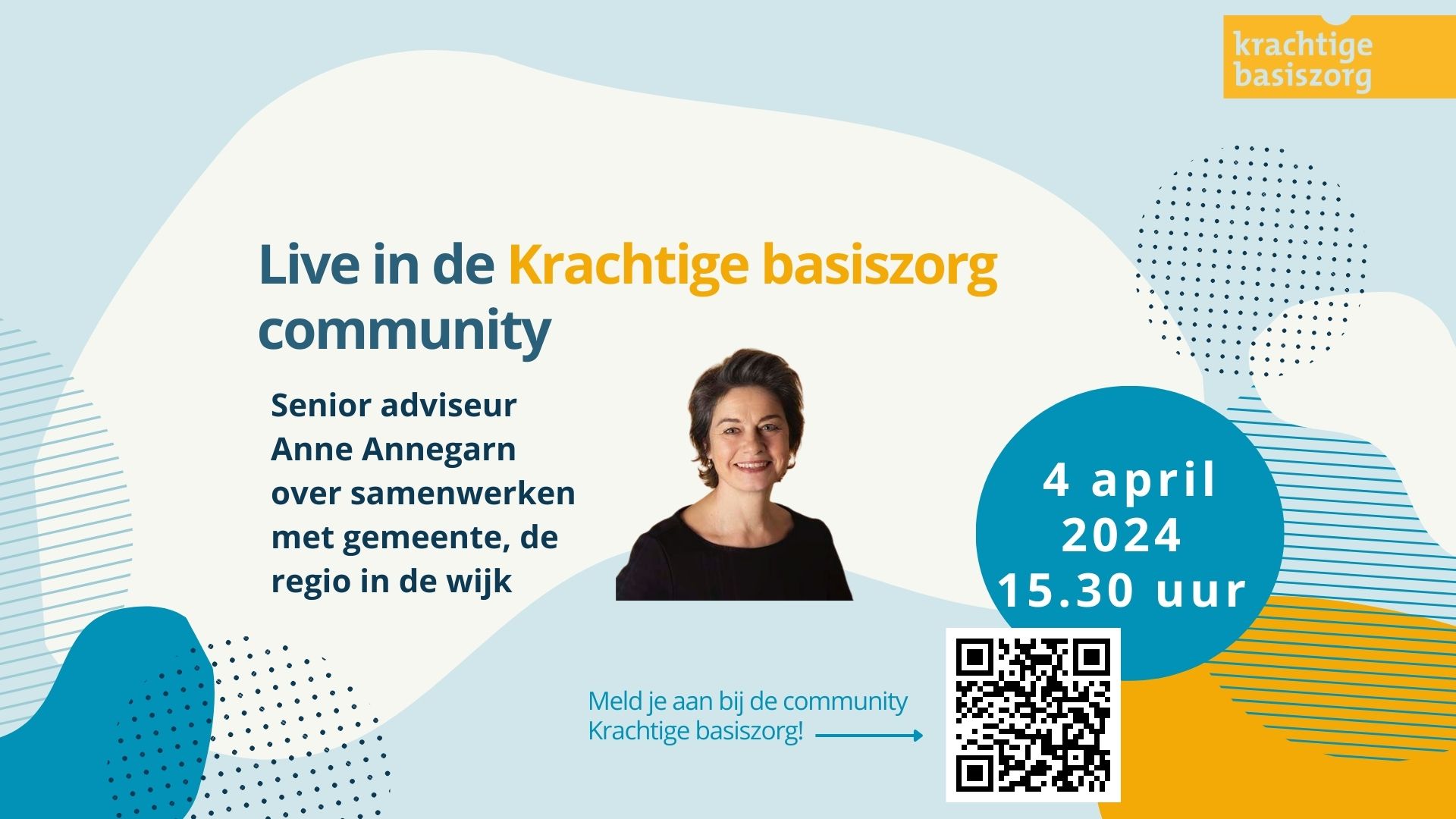 Deze sessie is interessant voor alle projectleiders uit het medisch en sociaal domein die AAN de zorg werken. Dit is je kans om in gesprek te gaan en al je vragen te stellen aan ervaringsdeskundige en projectleider Anne Annegarn, werkzaam als senior adviseur bij Elaa in Amsterdam. Zij deelt haar ervaring over het samenwerken met gemeente, regionale organisaties en partners in de wijk met Krachtige basiszorg.